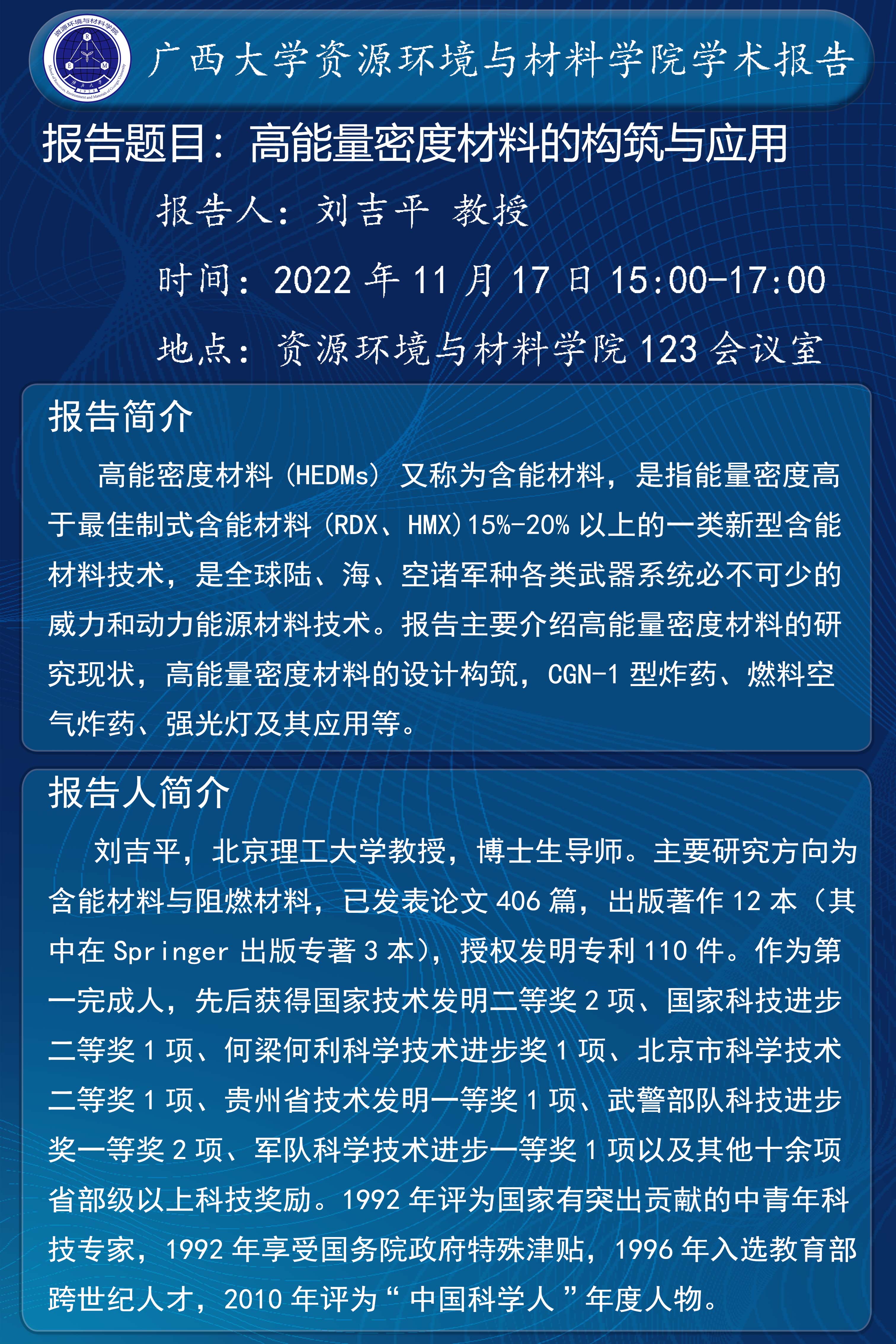 资源环境与材料学院学术报告 高能量密度材料的构筑与应用