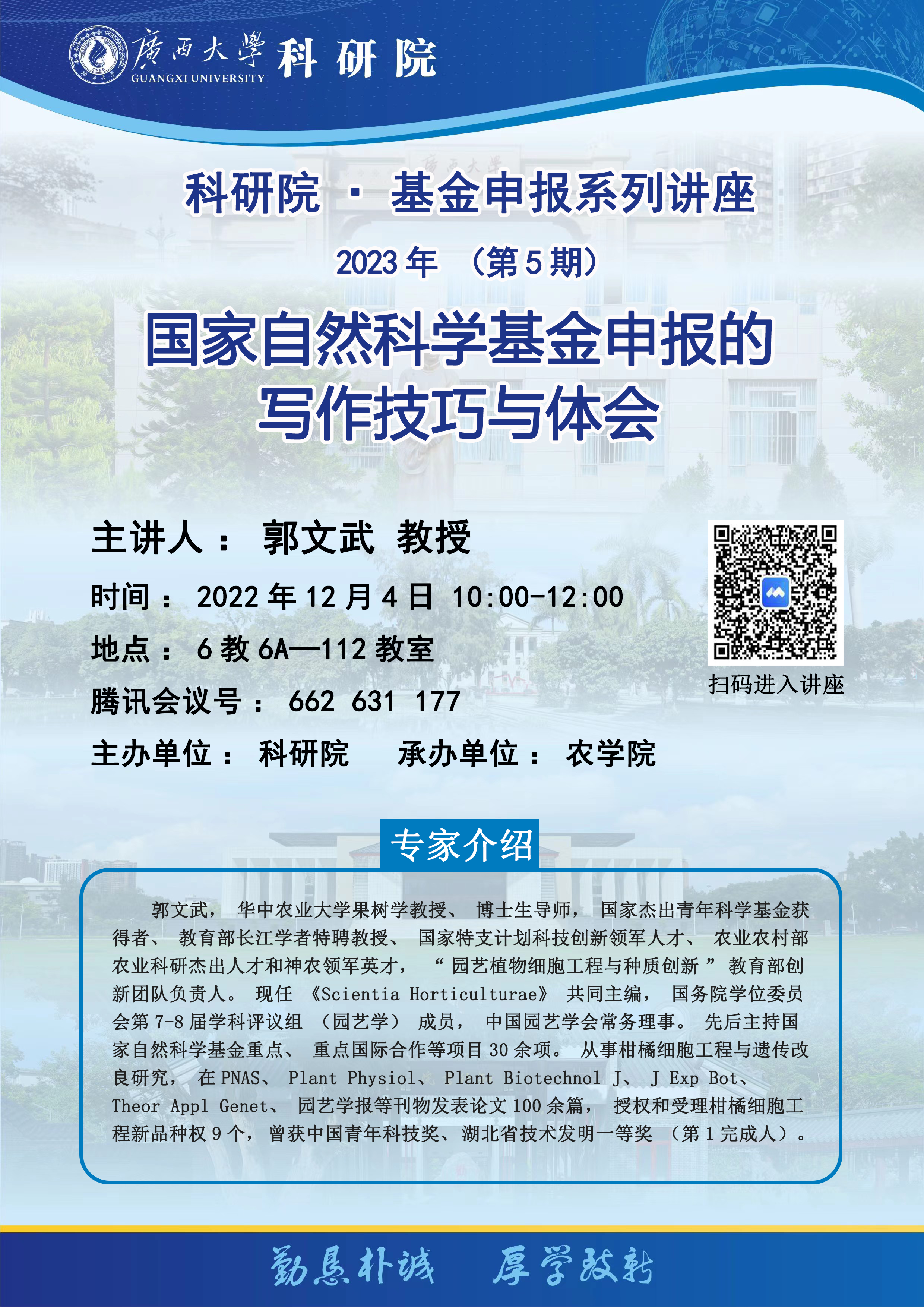 6教6A—112教室 腾讯会议号:662 631 177