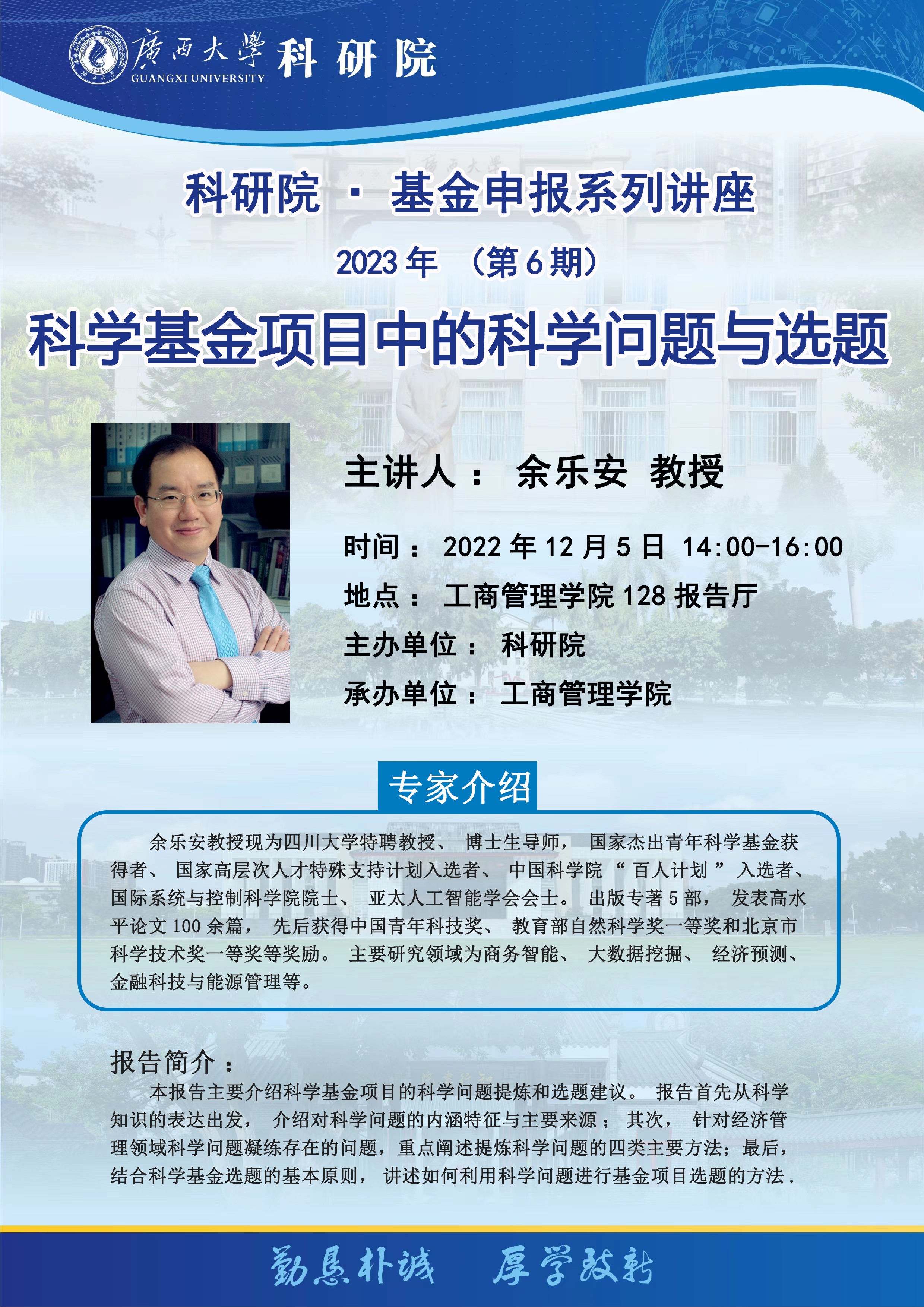 工商管理学院128报告厅 腾讯会议号:559 694 382