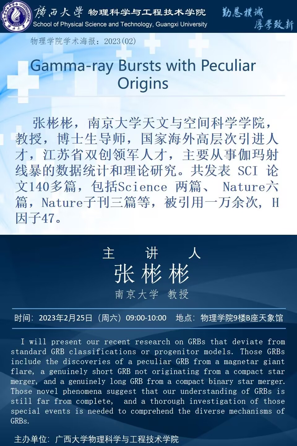 物理学院2023年学术报告系列之02:Gamma-ray Bursts with Peculiar Origins