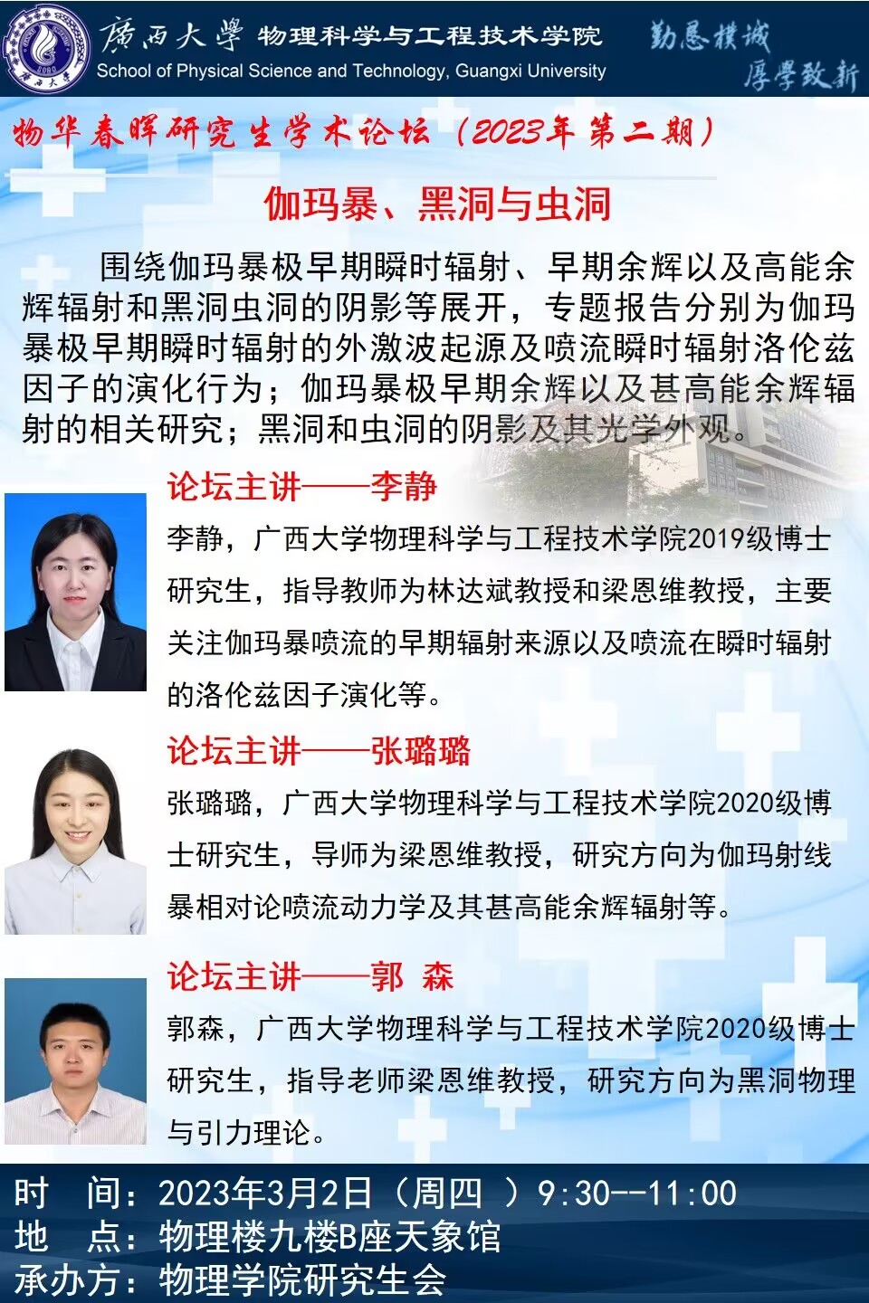 物理学院2023年物华春晖学术论坛(第二期):伽玛暴、黑洞与虫洞