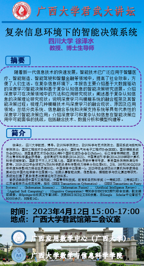 beat365英国官方网站君武大讲堂:复杂信息环境下的智能决策系统