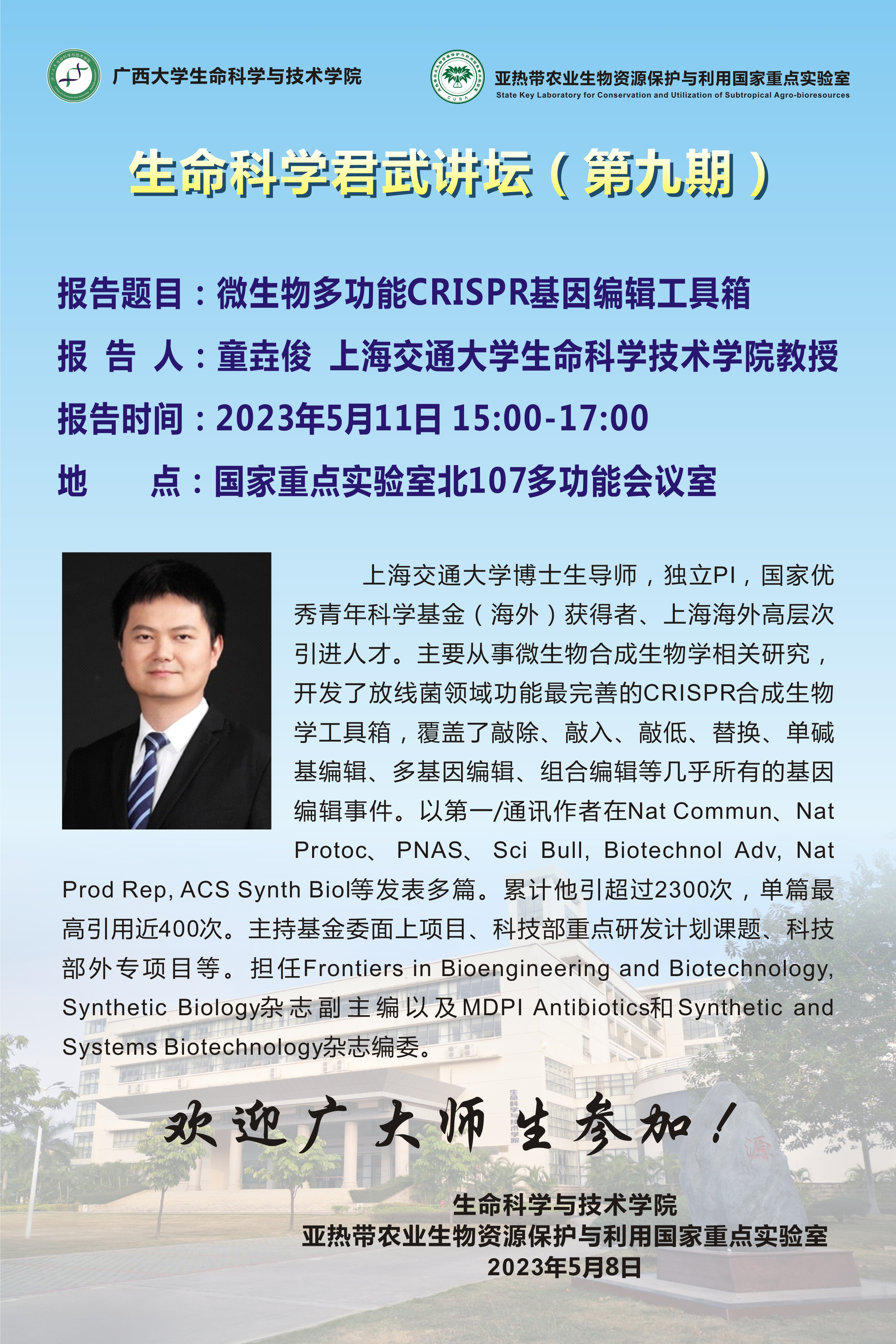 生命科学君武讲坛(第九期):微生物多功能CRISPR基因编辑工具箱