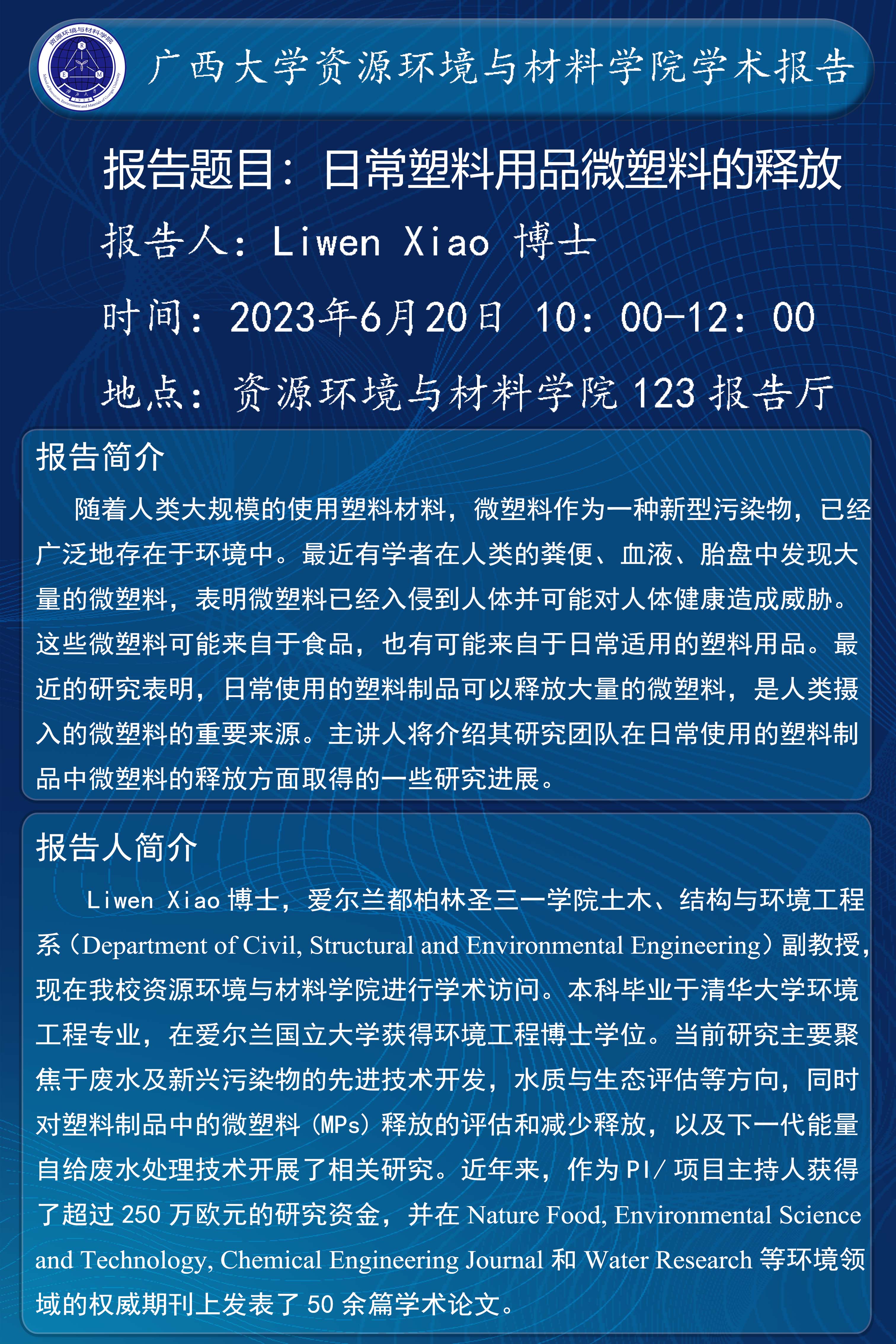 资源环境与材料学院学术报告:日常塑料用品微塑料的释放