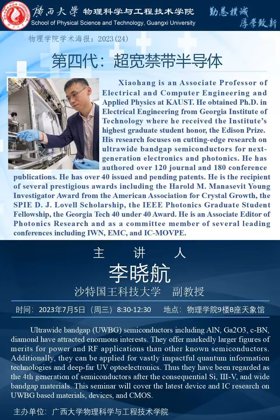物理学院2023年学术报告系列之24:第四代:超宽禁带半导体