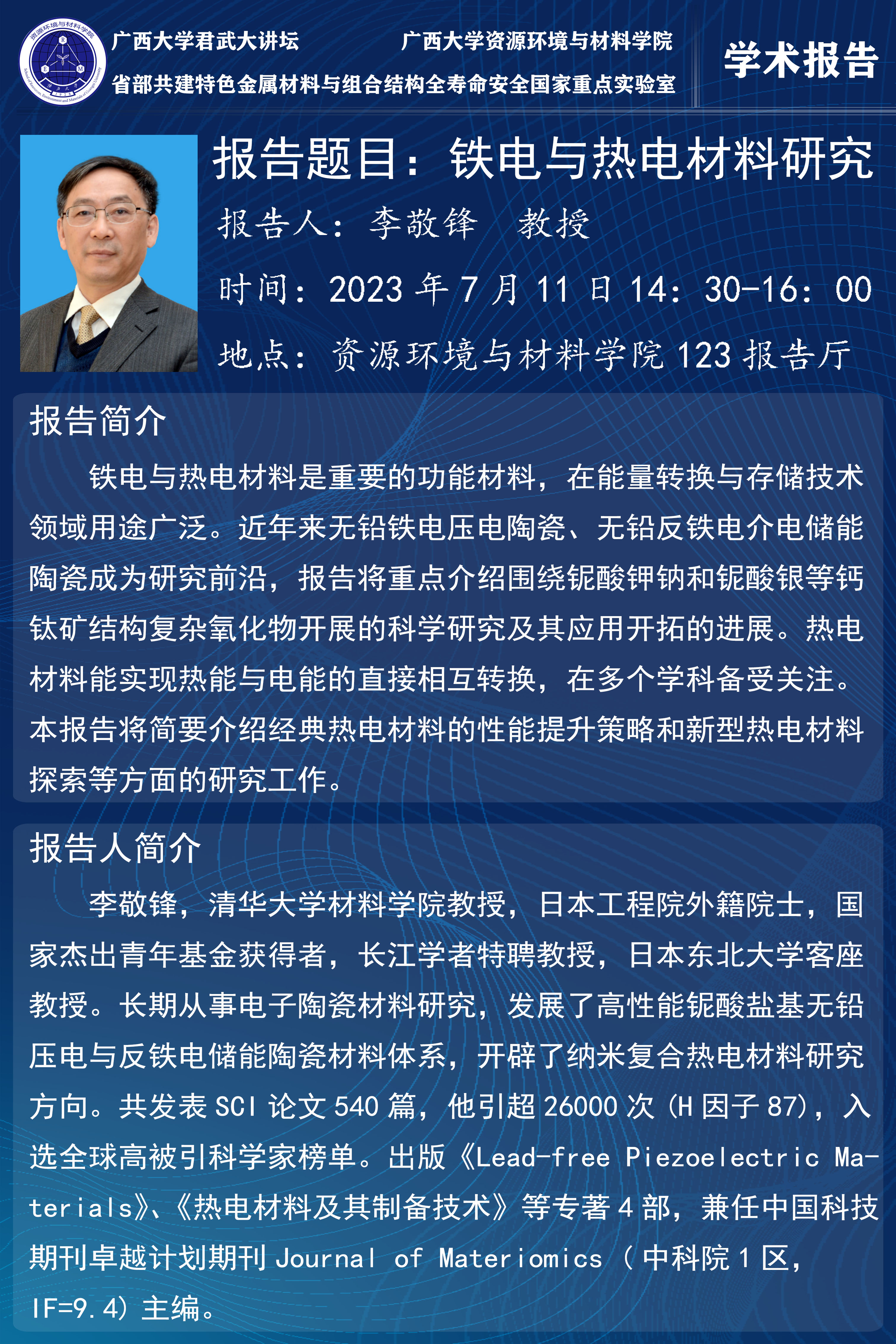 beat365英国官方网站君武大讲坛:铁电与热电材料研究