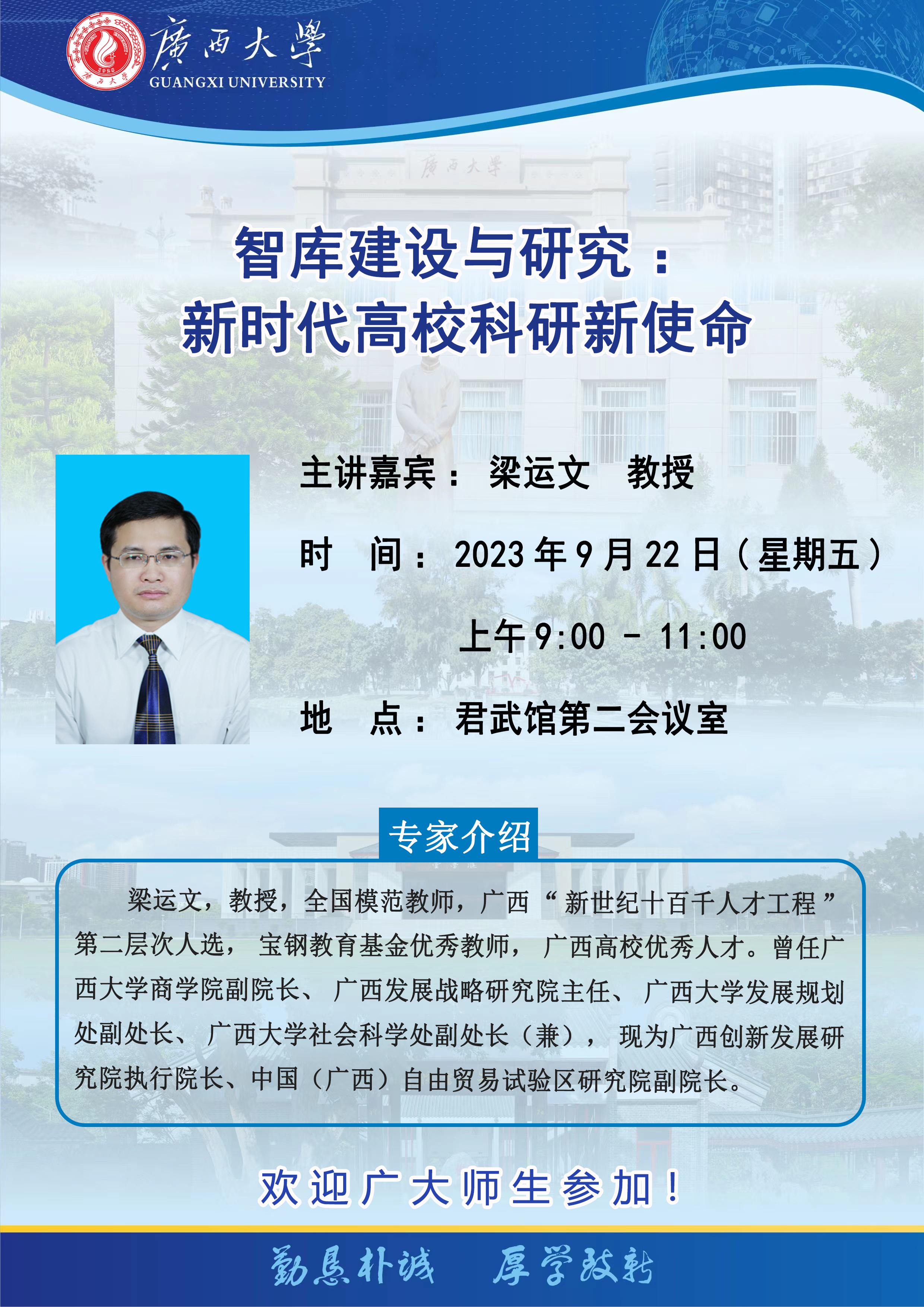 梁运文,教授,全国模范教师,广西“新世纪十百千人才工程”第二层次人选,宝钢教育基金优秀教师,广西高校优秀人才。曾任beat365英国官方网站商学院副院长、广西发展战略研究院主任、beat365英国官方网站发展规划处副处长、beat365英国官方网站社会科学处副处长(兼),现为广西创新发展研究院执行院长、中国(广西)自由贸易试验区研究院副院长。
