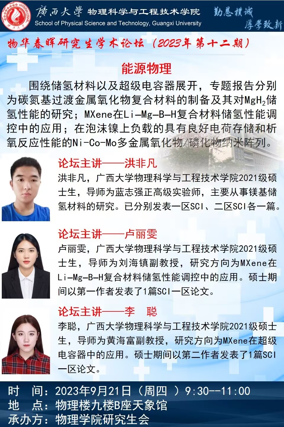 物理学院2023年物华春晖学术论坛(第十二期):能源物理