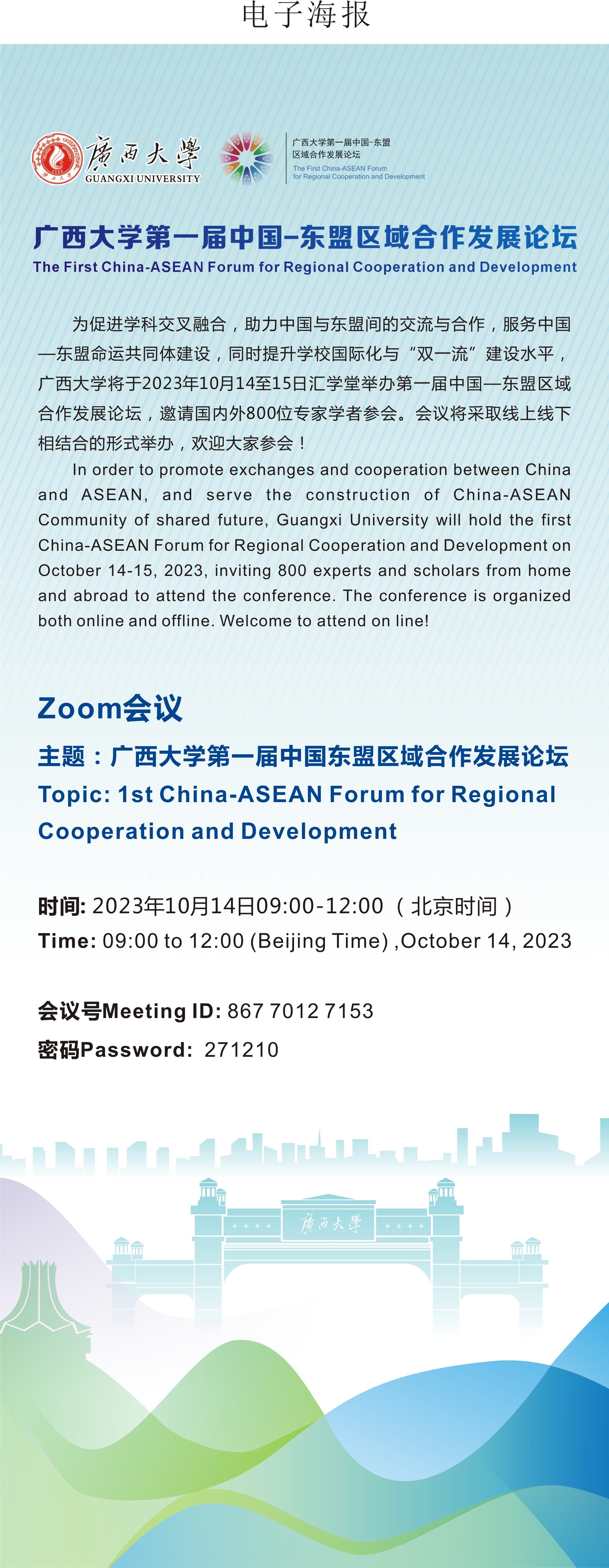 Zoom会议(线上线下结合):beat365英国官方网站第一届中国东盟区域合作发展论坛