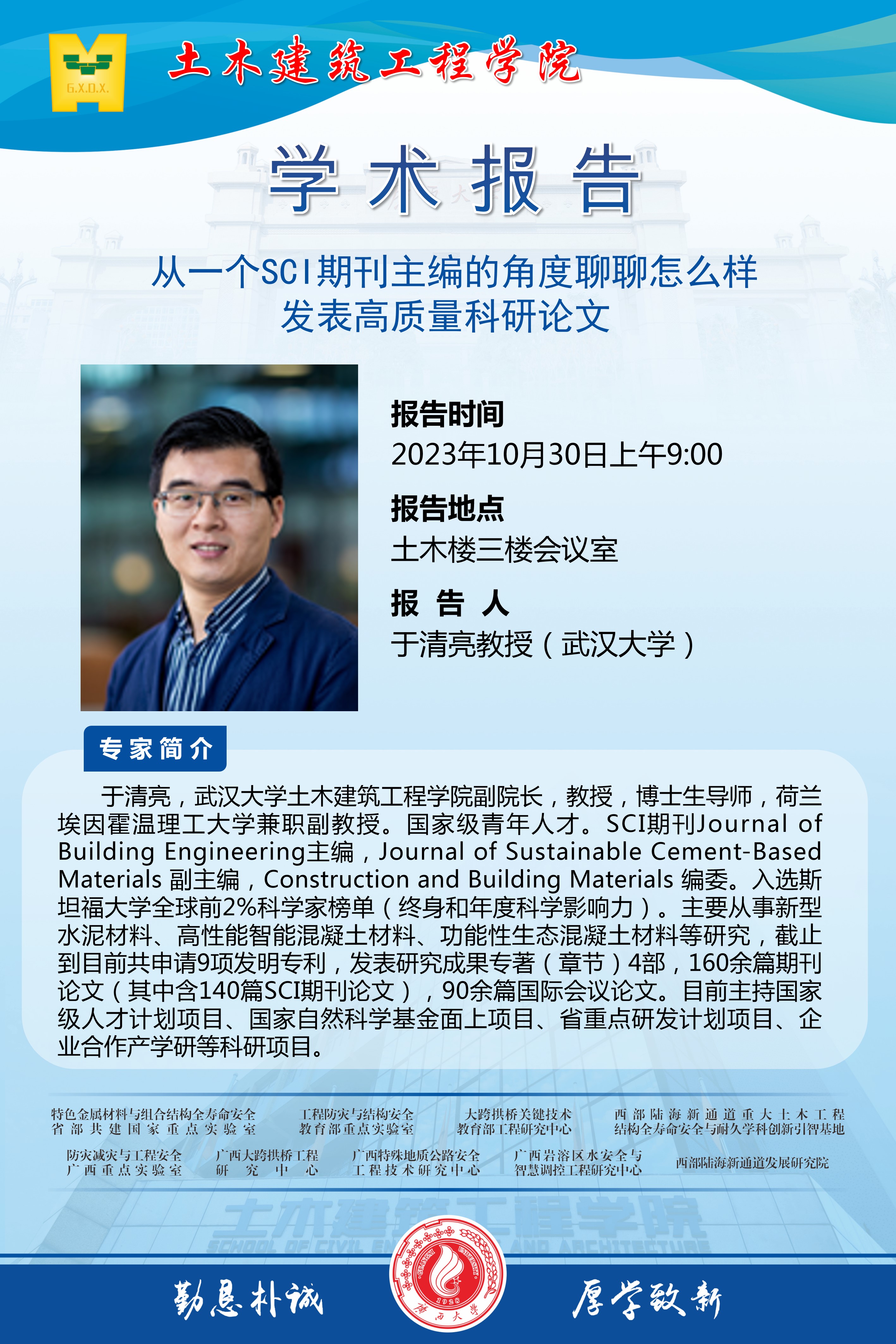 土木建筑工程学院学术报告:从一个SCI期刊主编的角度聊聊怎么样发表高质量科研论文