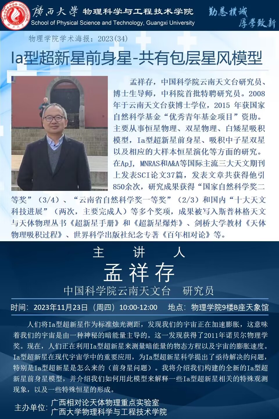 物理学院2023年学术报告系列之34:Ia型超新星前身星-共有包层星风模型