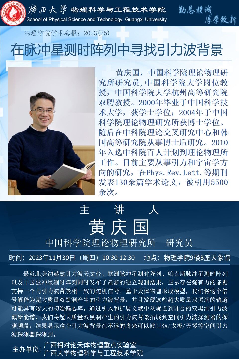 物理学院2023年学术报告系列之35:在脉冲星测时阵列中寻找引力波背景