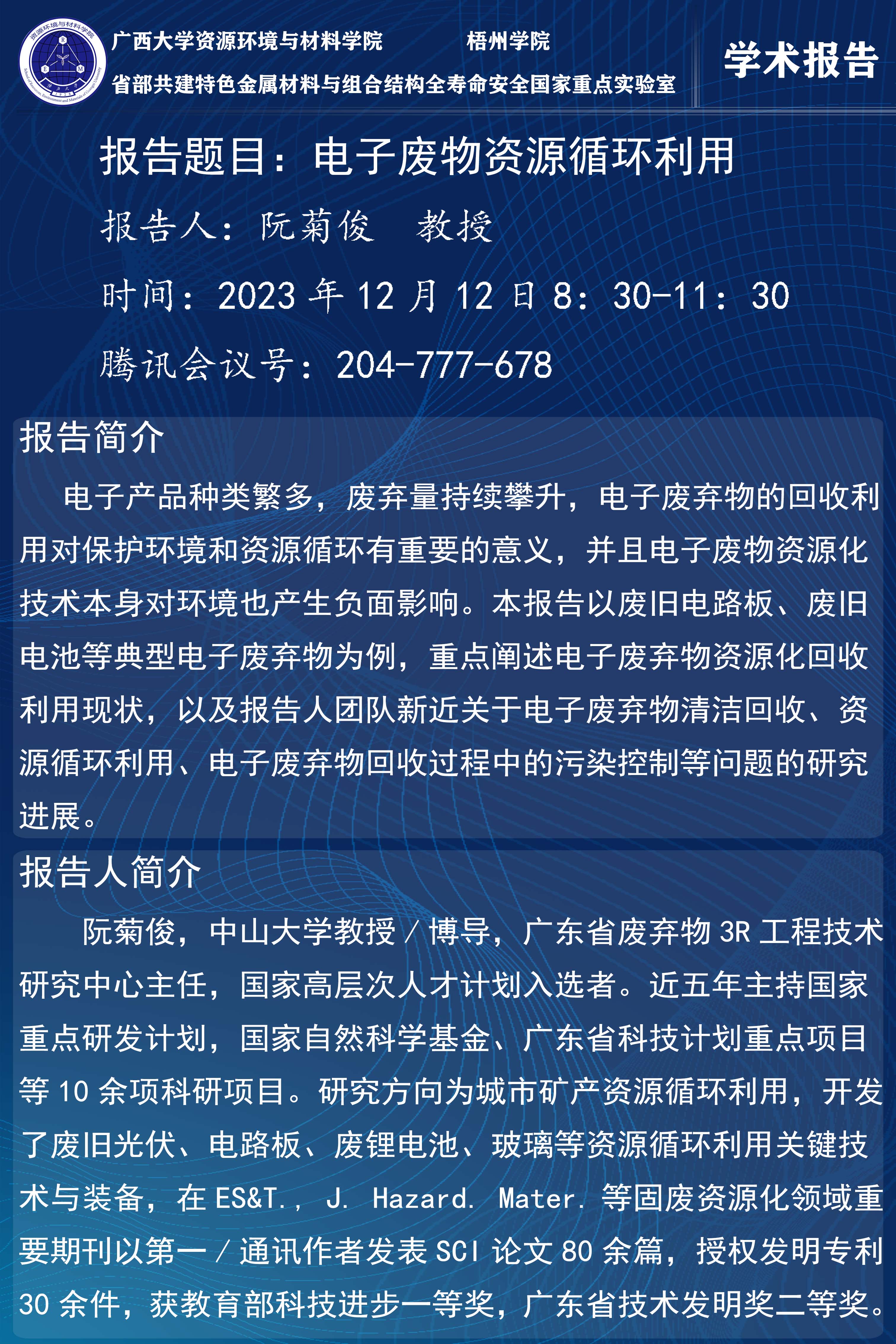 资源环境与材料学院学术报告:电子废物资源循环利用