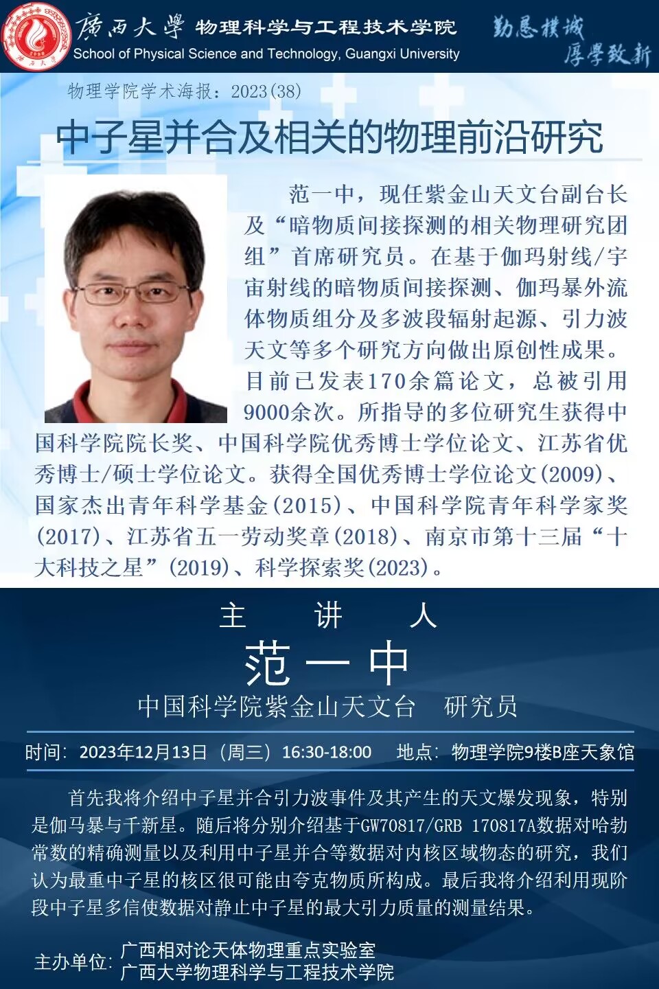 物理学院2023年学术报告系列之38:中子星并合及相关的物理前沿研究