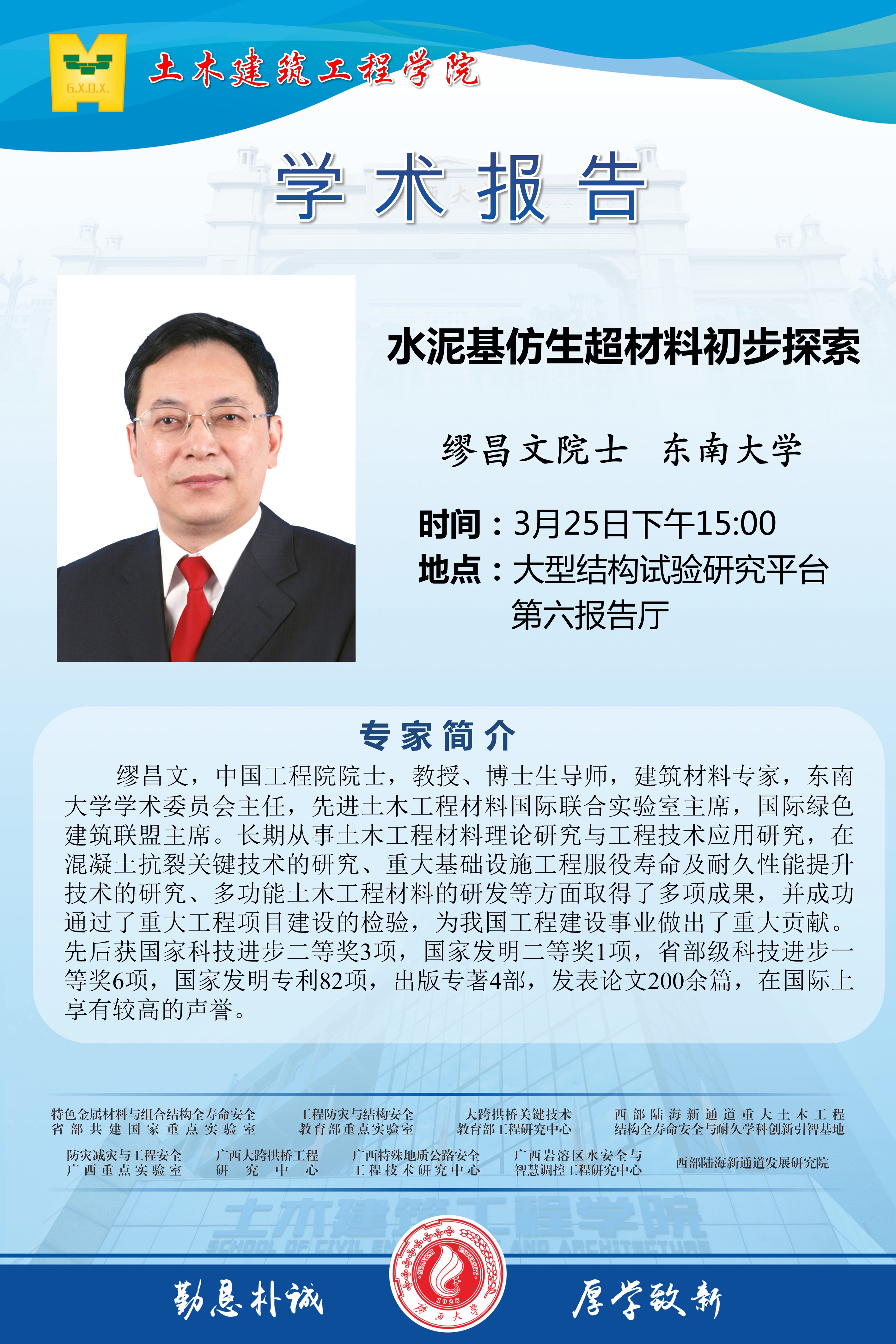 土木建筑工程学院学术报告:水泥基仿生超材料初步探索