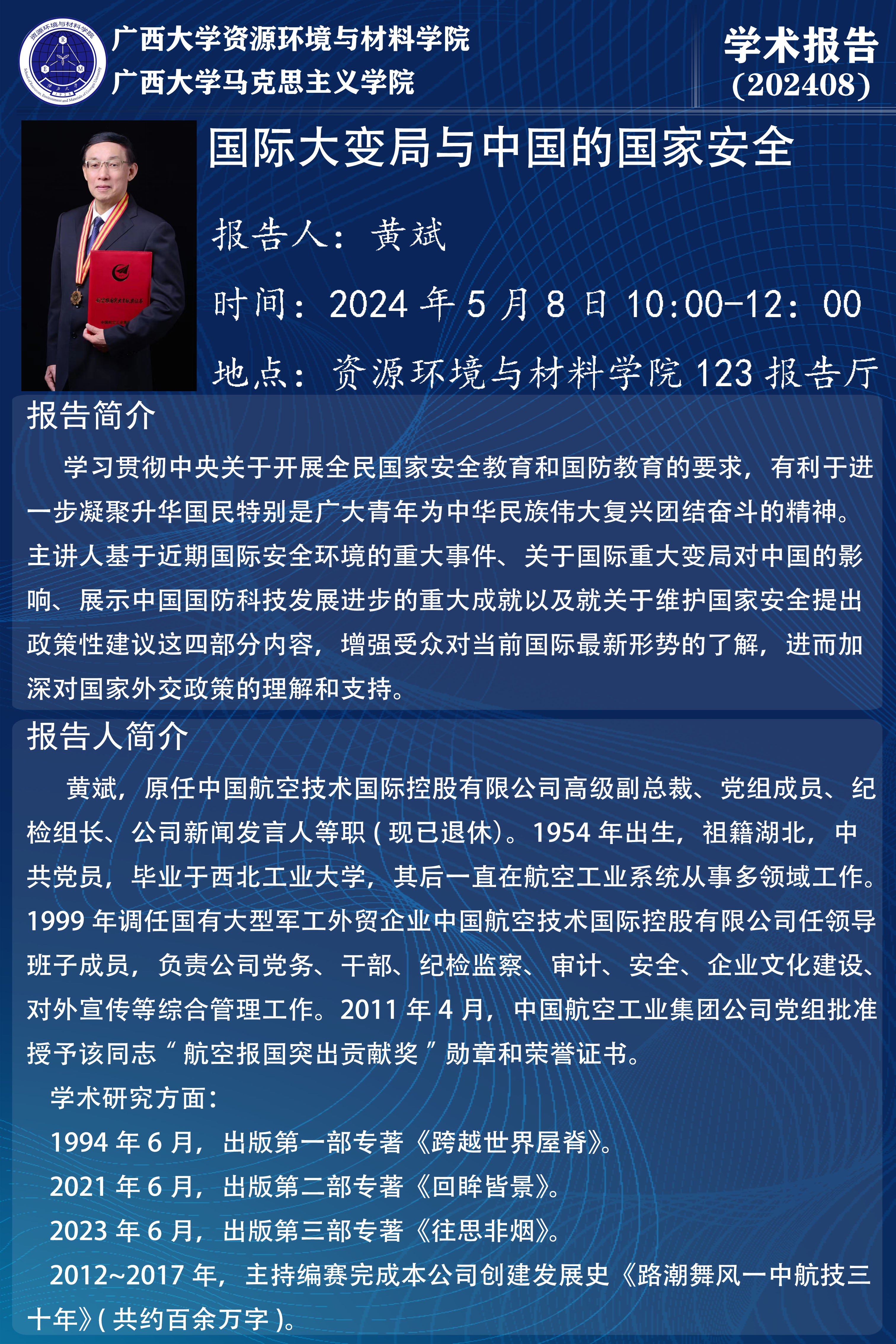 资源环境与材料学院学术报告:国际大变局与中国的国家安全