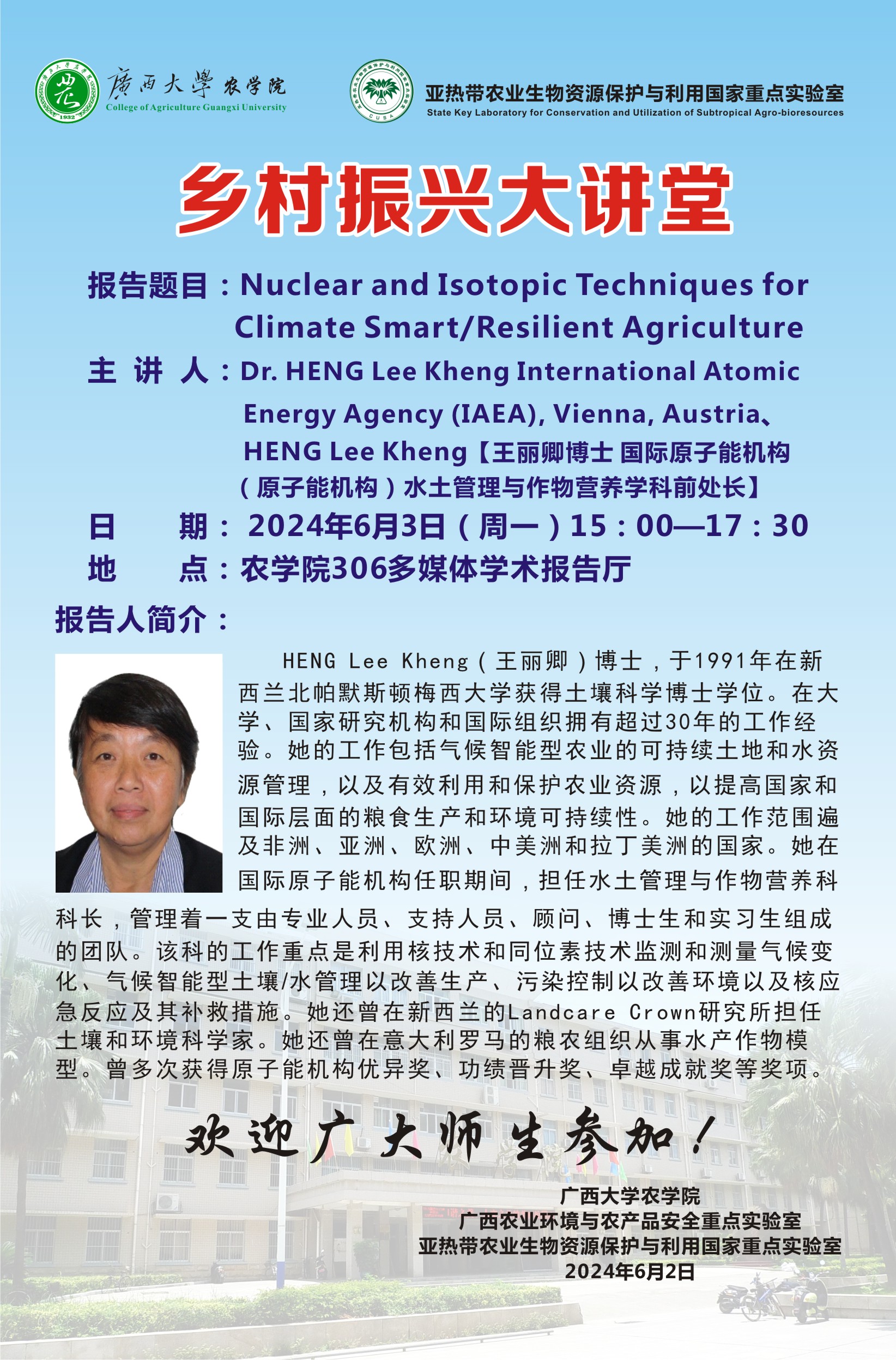 乡村振兴大讲堂:Nuclear and Isotopic Techniques for Climate Smart/Resilient Agriculture