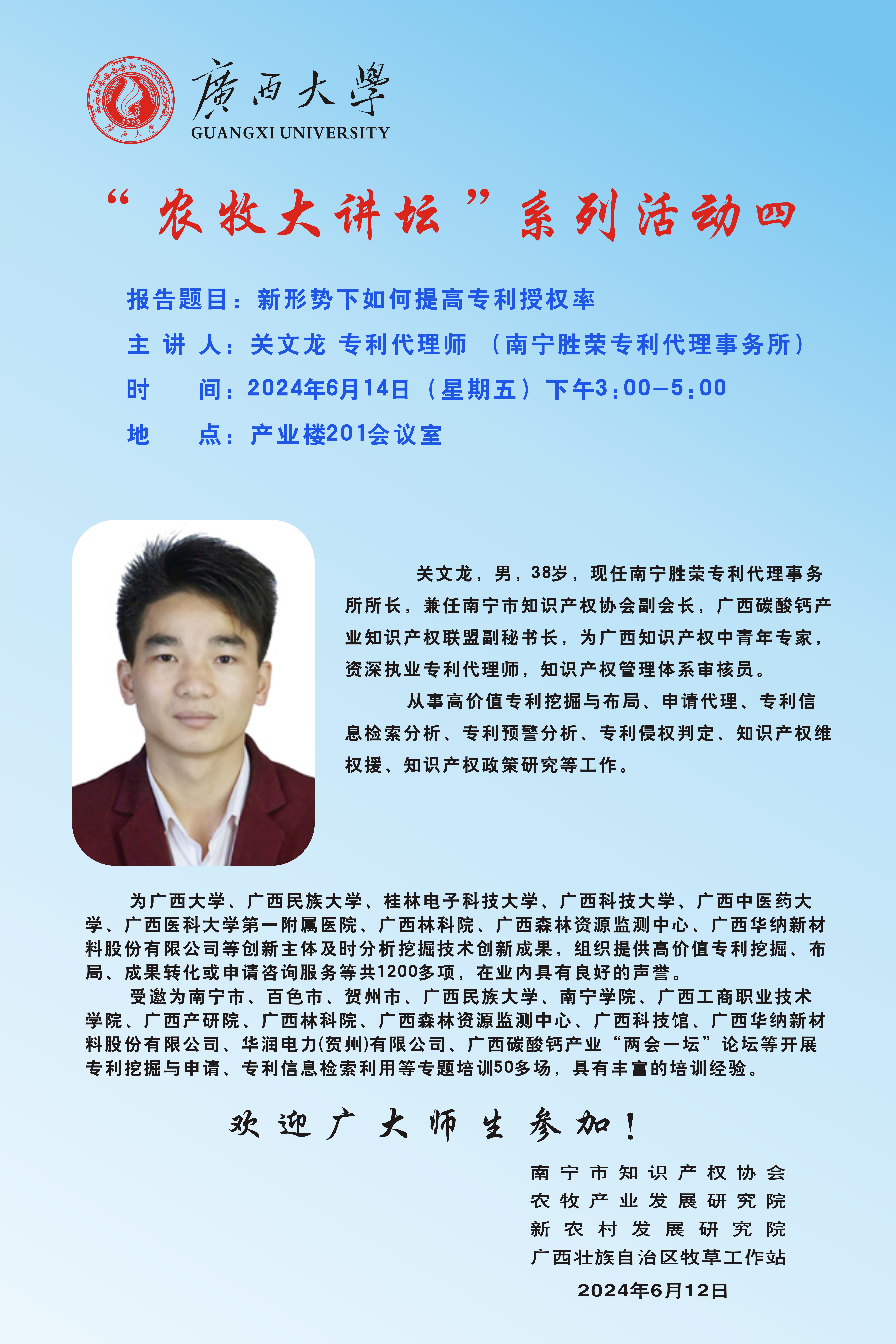 “农牧大讲坛”系列活动四:新形势下如何提高专利授权率