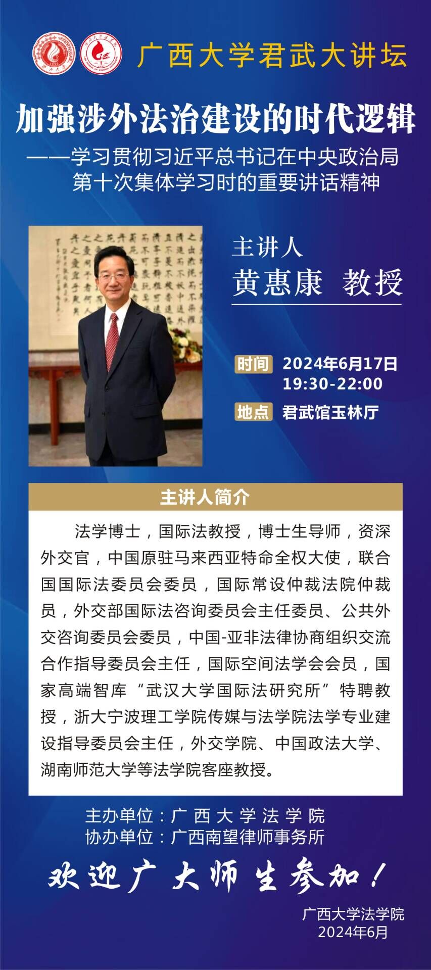 君武大讲坛:强涉外法治建设的时代逻辑--学习贯彻习近平总书记在中央政治局第十次集体学习时的重要讲话精神