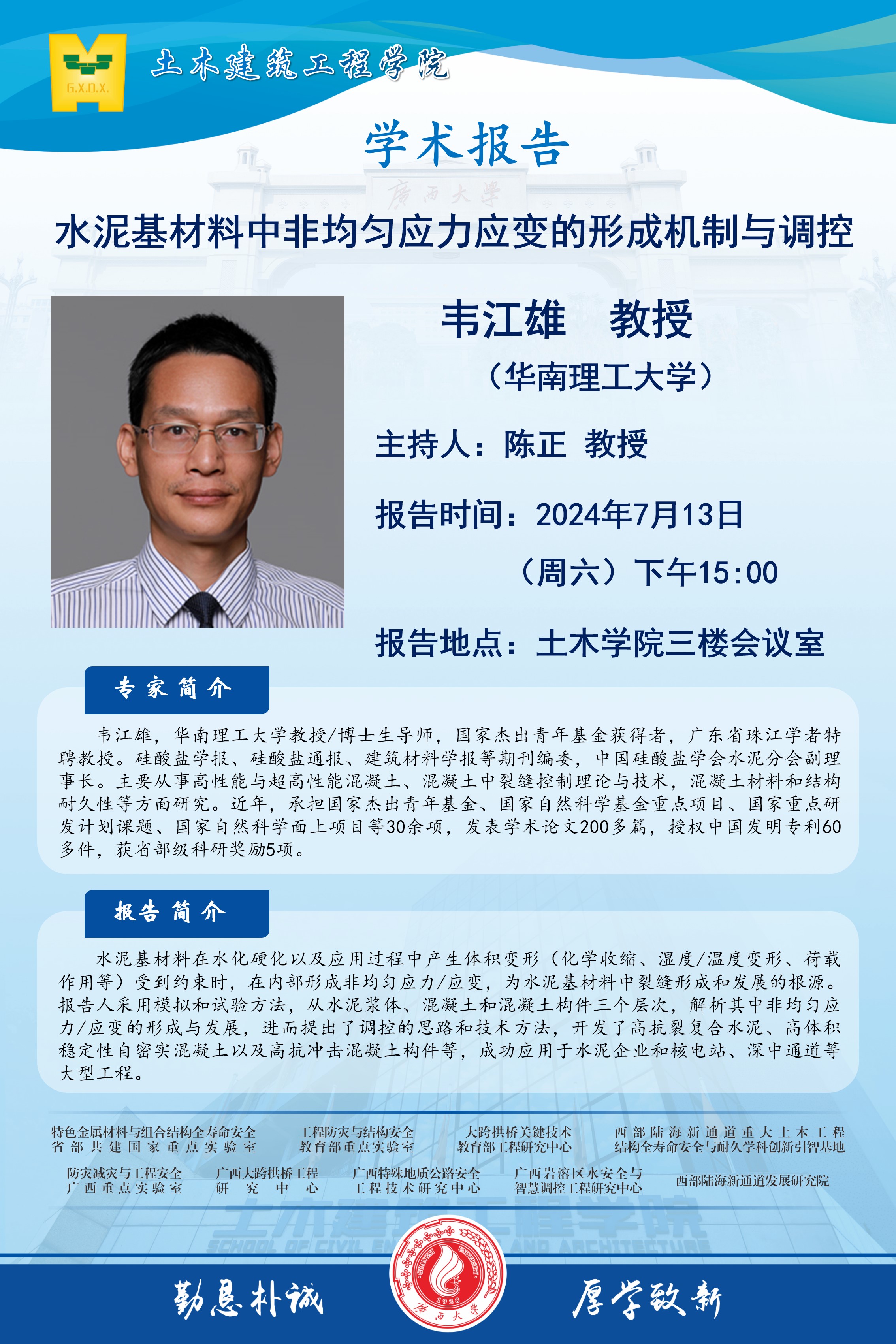 土木建筑工程学院学术报告:水泥基材料中非均匀应力应变的形成机制与调控