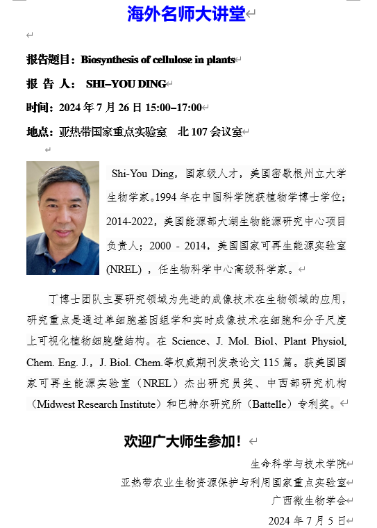 海外名师大讲堂:Biosynthesis of cellulose in plants