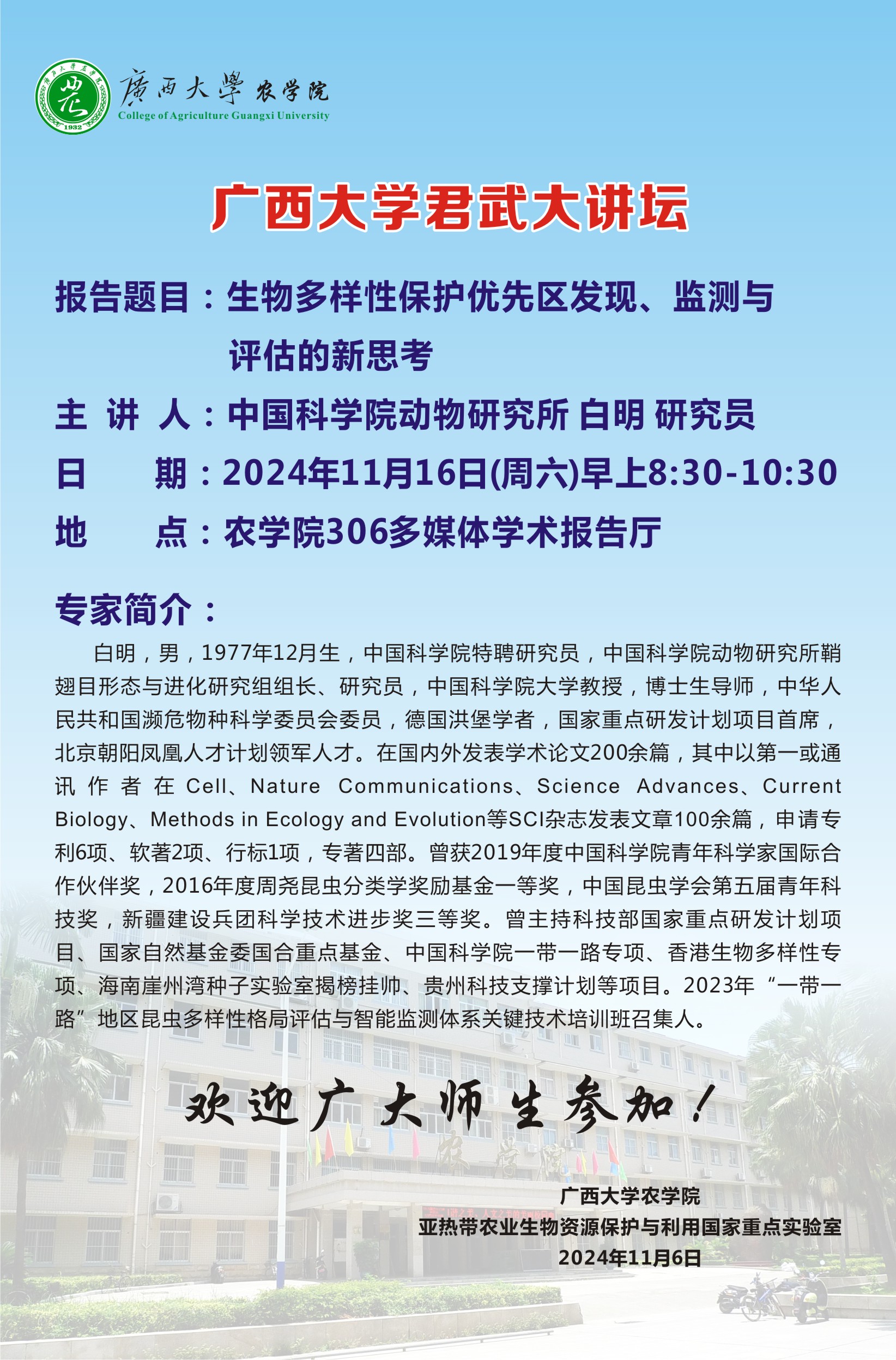 君武大讲坛:生物多样性保护优先区发现、监测与评估的新思考