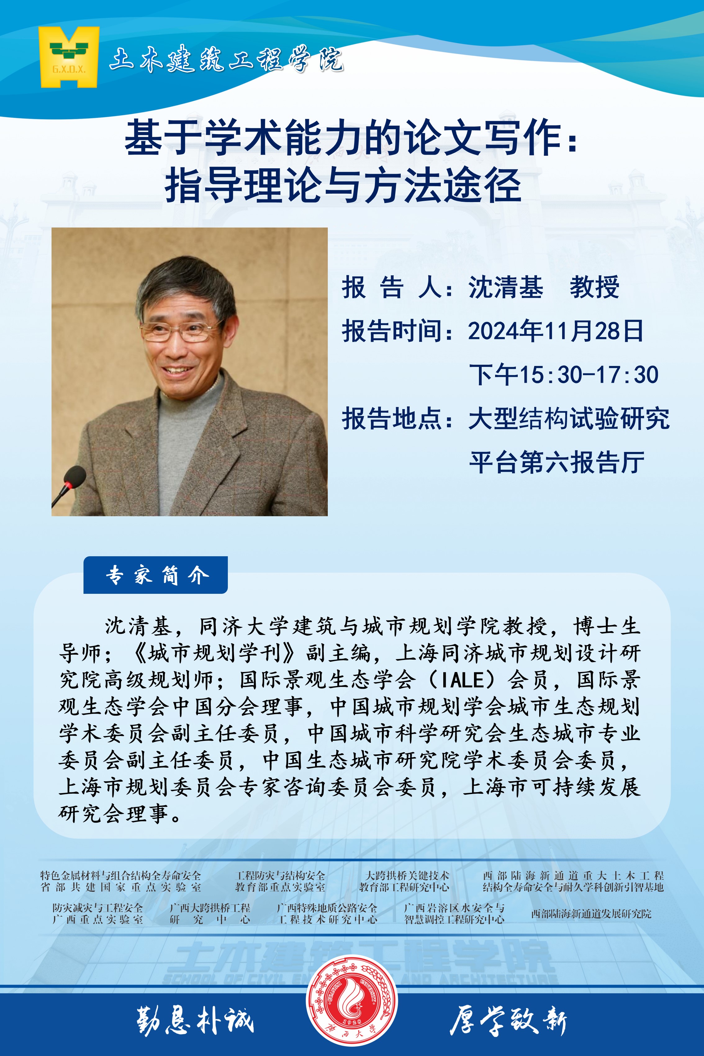 土木建筑工程学院学术报告:基于学术能力的论文写作——指导理论与方法途径