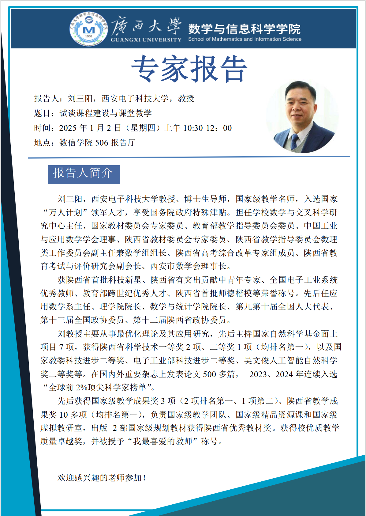 数信学院学术报告:试谈课程建设与课堂教学