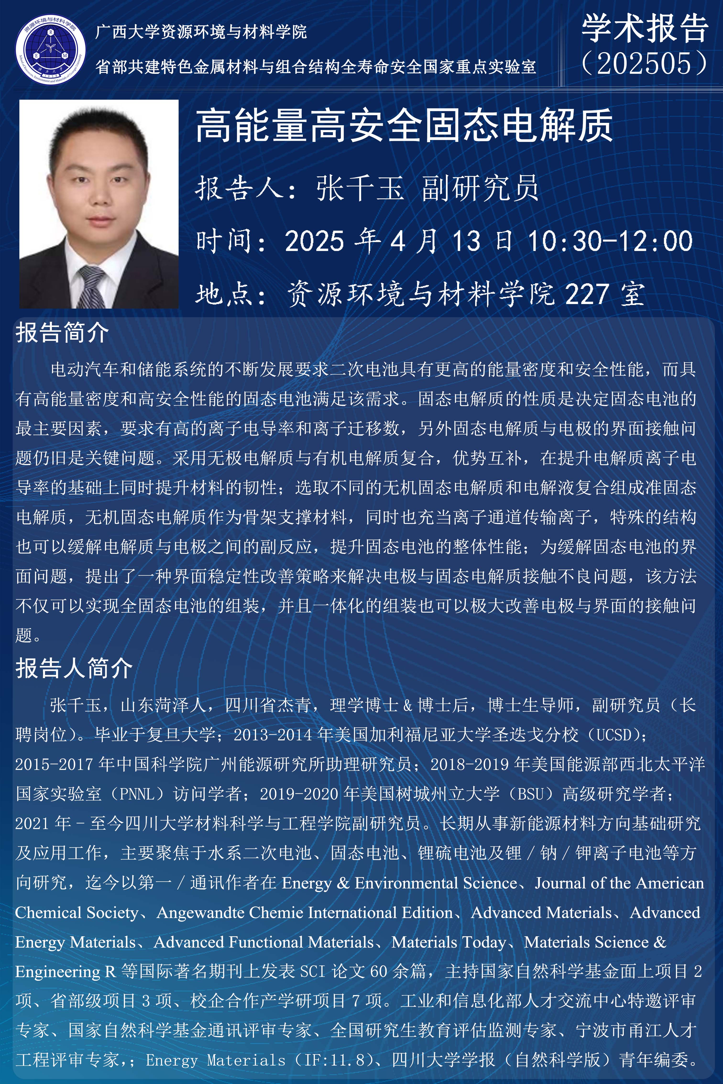 资源环境与材料学院学术报告:高能量高安全固态电解质