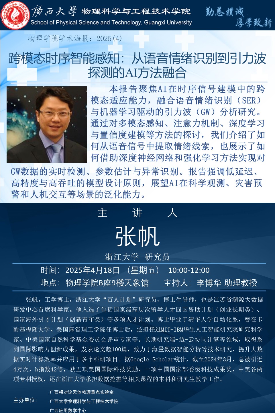 物理科学与工程技术学院学术报告:跨模态时序智能感知——从语音情绪识别到引力波探测的AI方法融合