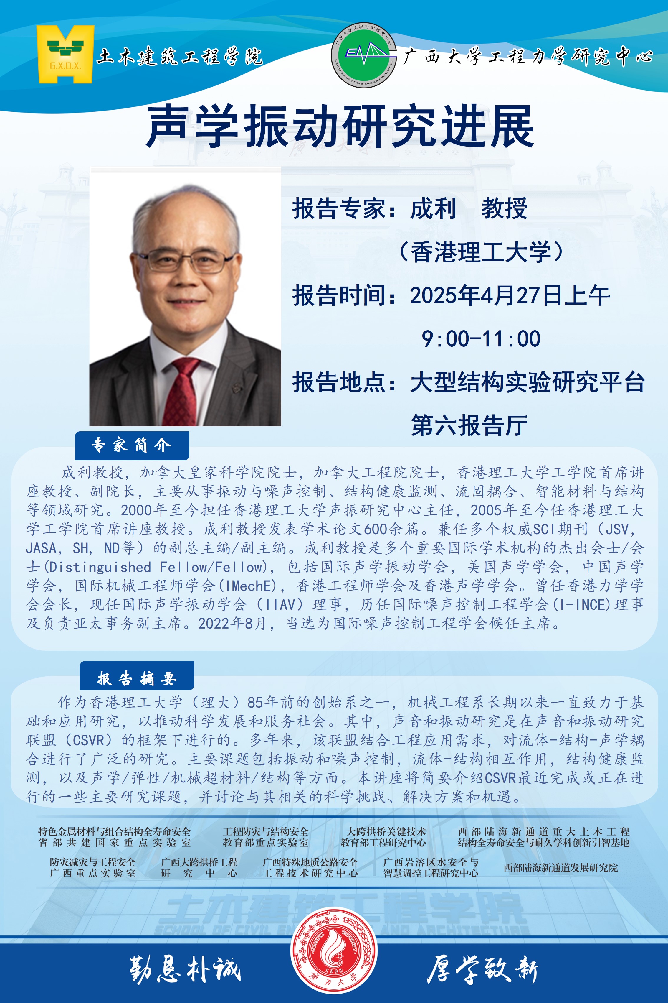 土木建筑工程学院、工程力学研究中心学术报告:声学振动研究进展