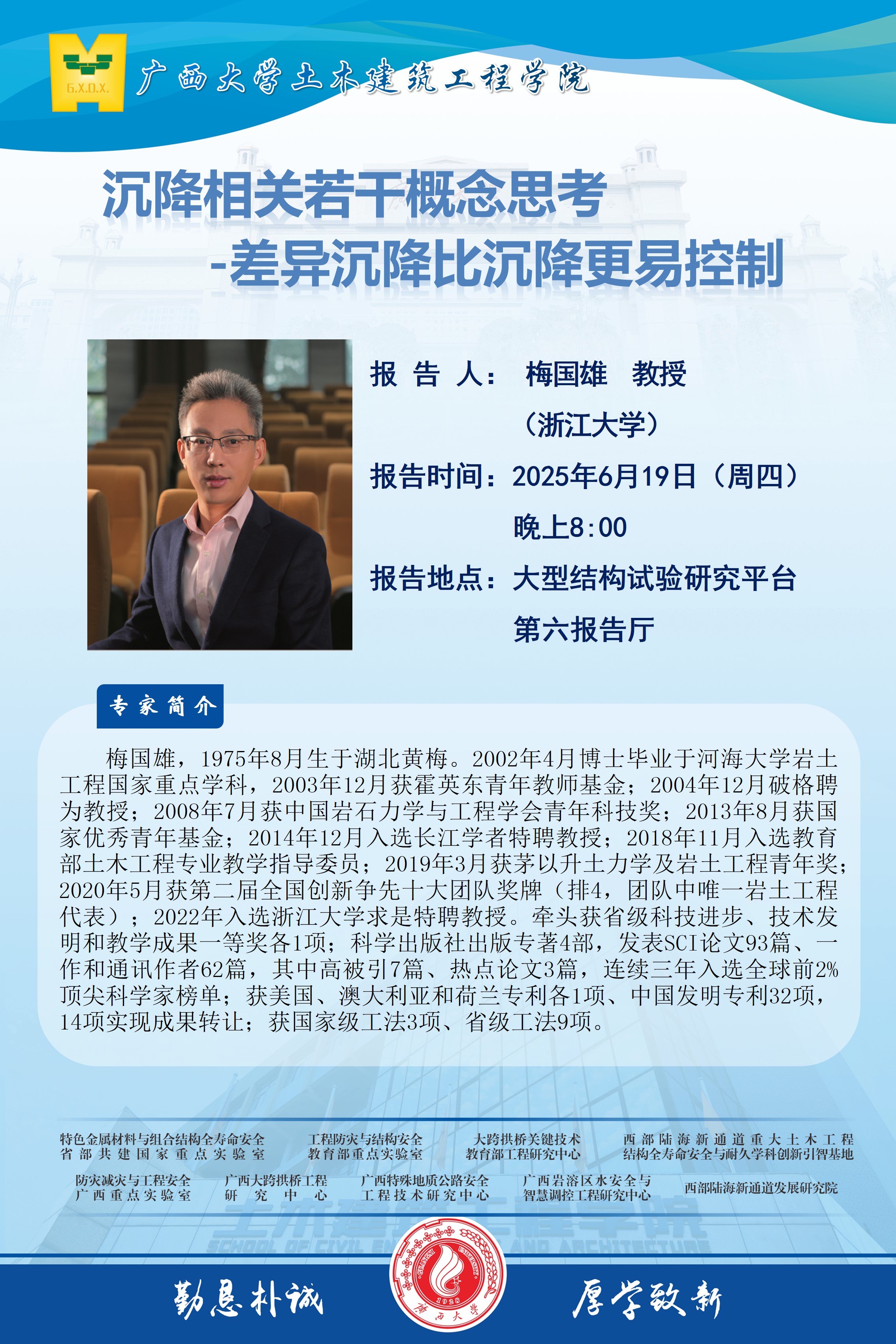 土木建筑工程学院学术报告:沉降相关若干概念思考-差异沉降比沉降更易控制