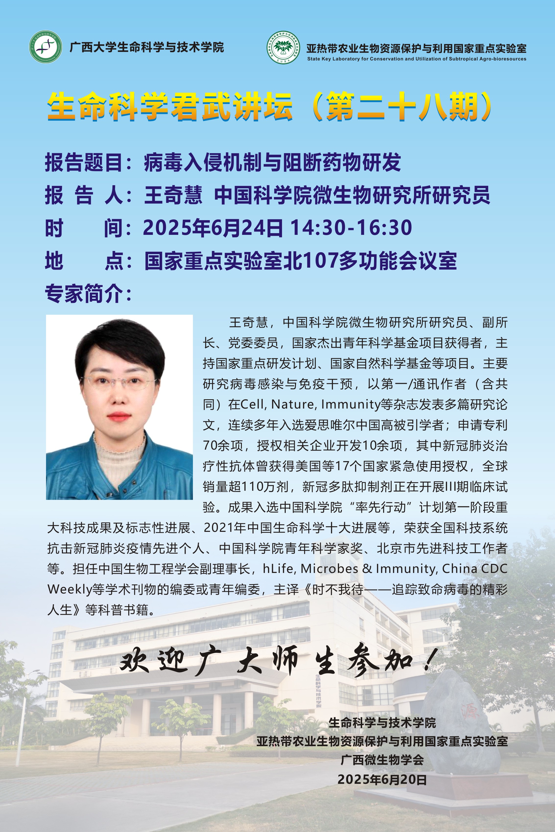 生命科学与技术学院生命科学君武讲坛第二十八期:病毒入侵机制与阻断药物研发