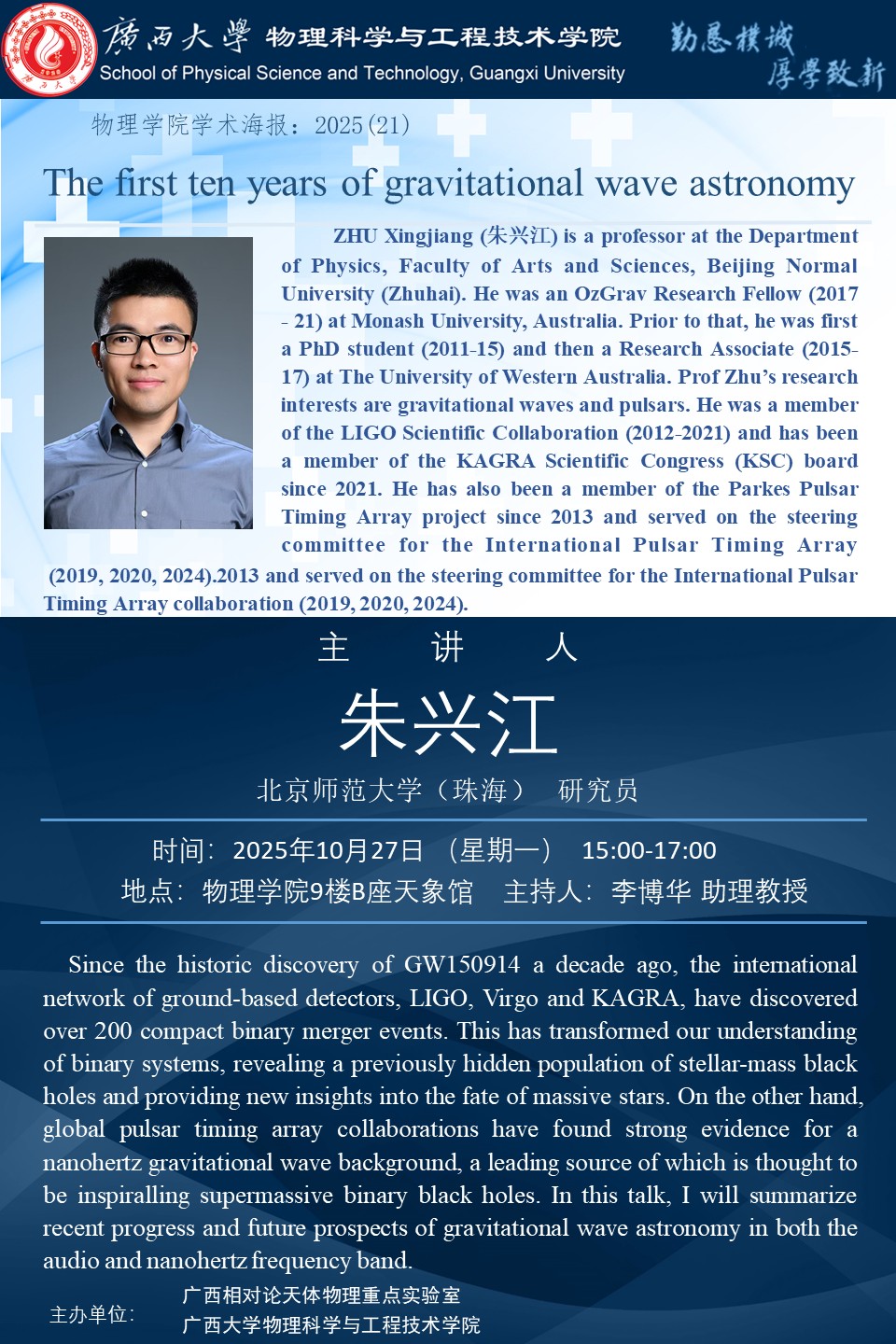物理科学与工程技术学院学术报告:The first ten years of gravitational wave astronomy