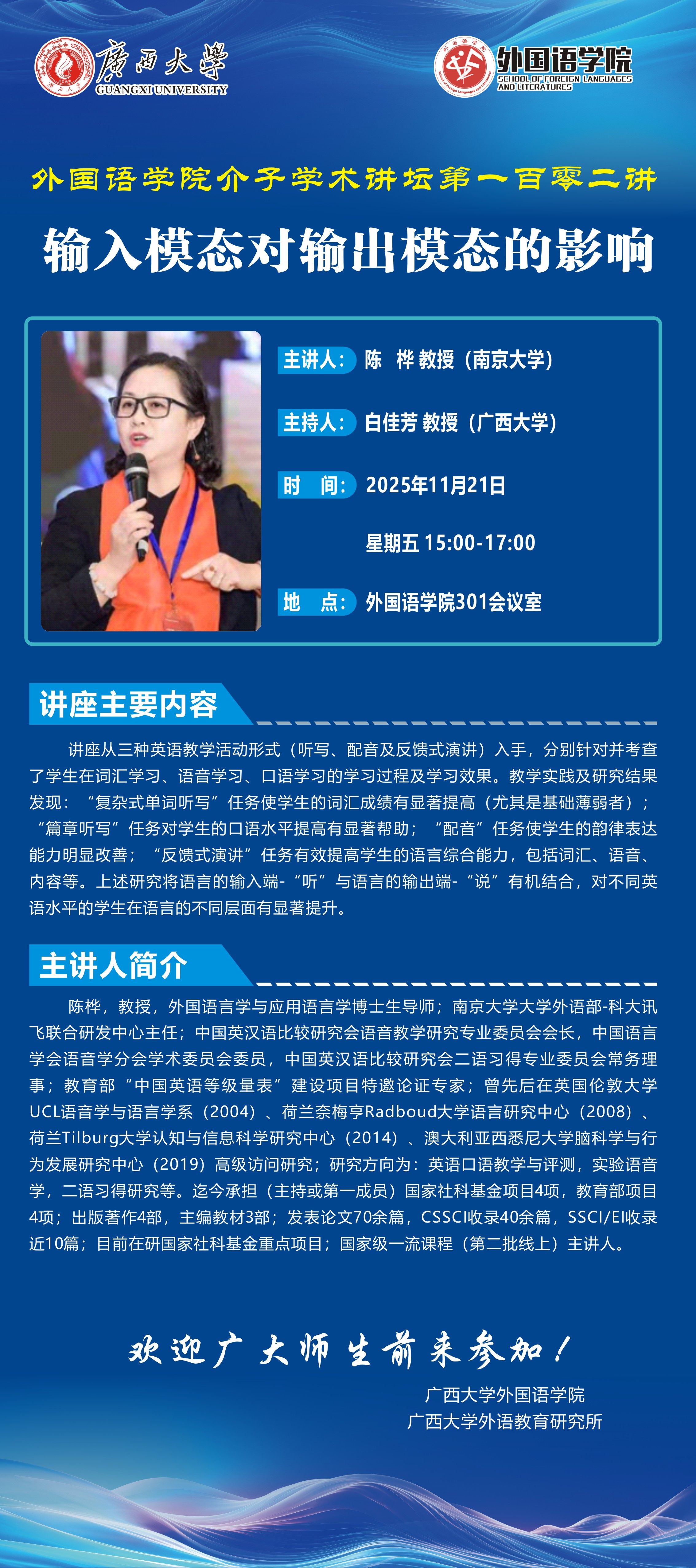 外国语学院学术报告:输入模态对输出模态的影响