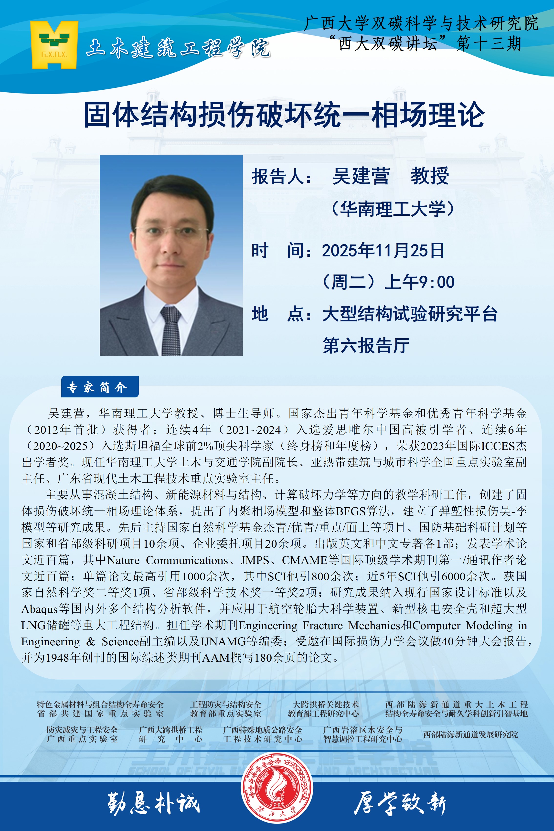 土木建筑工程学院、beat365英国官方网站双碳科学与技术研究院学术报告:固体结构损伤破坏统一相场理论