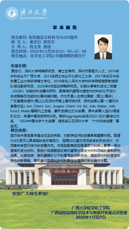 化学化工学院学术报告: 有机硼显示材料与OLED器件