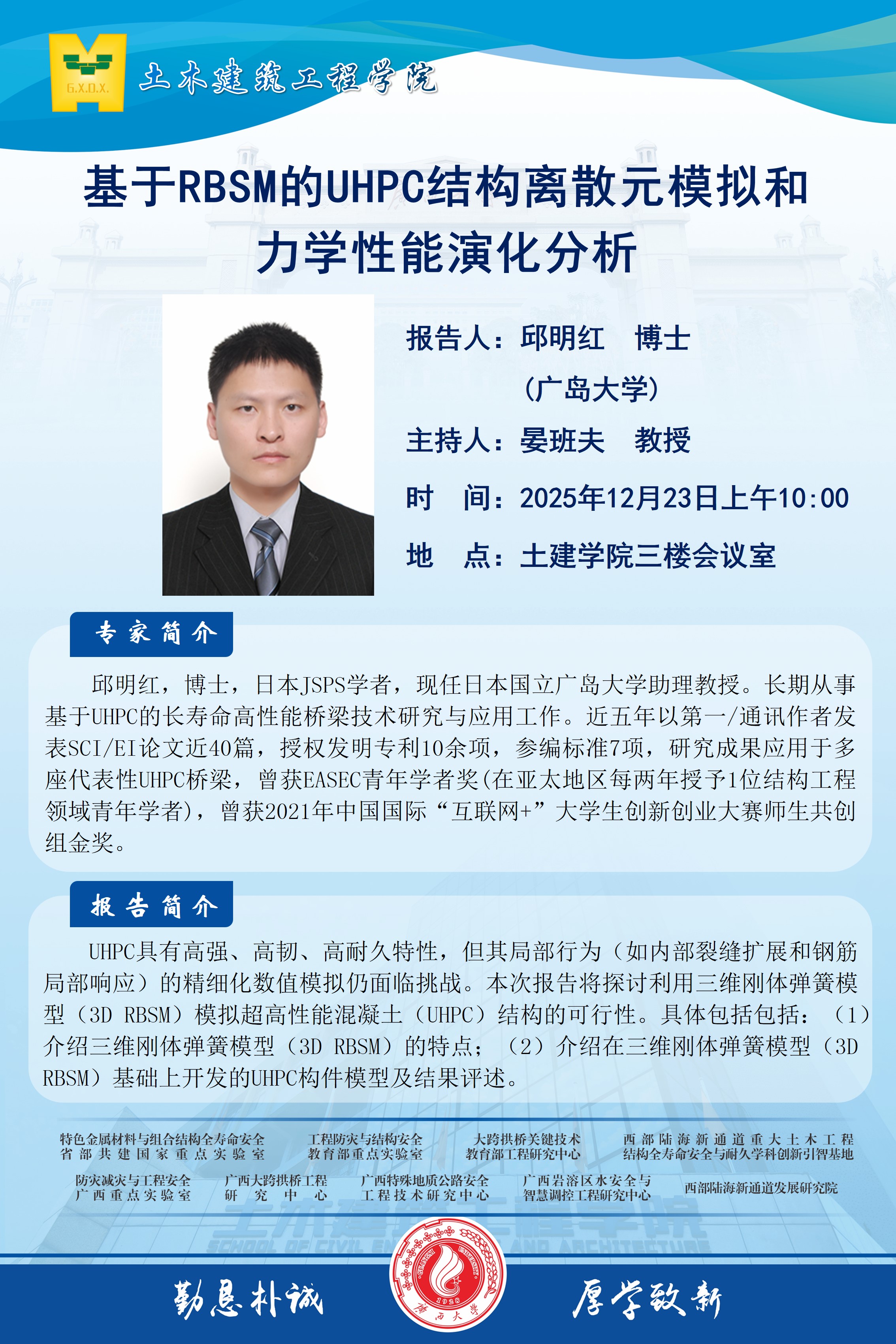 土木建筑工程学院学术报告:基于RBSM的UHPC结构离散元模拟和力学性能演化分析