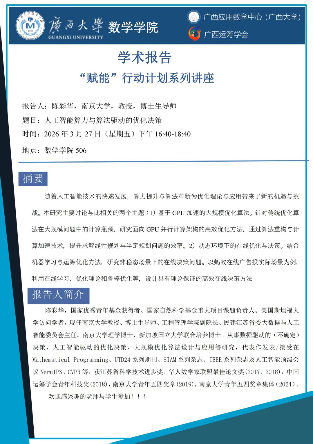 上一条:化学化工学院学术报告: 新型光催化产氢体系构建及表面反应动力学强化机制