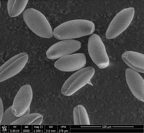 图中可见幽兰花粉个体及表面结构;
